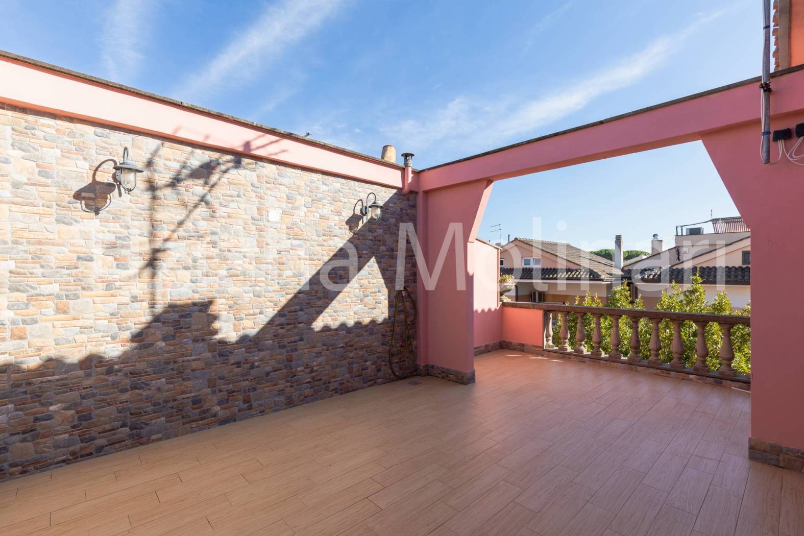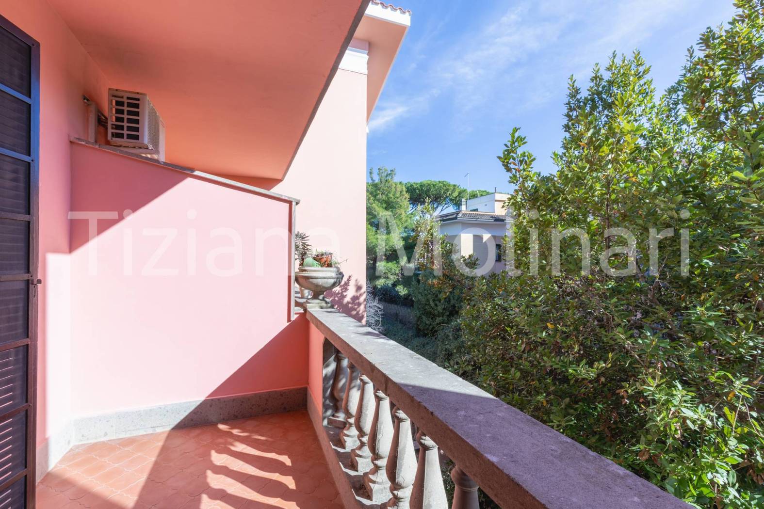 Axa - via saffo - in posizione riservata e silenziosa, luminosa e bella villa di mq. 250. E' ristrutturata con ottime rifiniture: finestre in legno stile inglese, con vetri visarm; aria condizionata; camera matrimoniale completamente insonorizzata; persiane anti intrusione; corrente trifase 10+1 kw e tutti i servizi sono ampiamente finestrati. L'immobile si sviluppa su quattro livelli ed ha un'ottima esposizione sud e ovest. La villa e' composta da: piano seminterrato con grande sala hobby con camino, fornita di allacci per un'eventuale angolo cottura ed un comodo box auto di mq. 22, con una rampa d'accesso particolarmente dolce. Al piano riazato sono presenti un bellissimo salone, una grande cucina, una verande ed un balcone. Il primo piano e' composto da una camera matrimoniale, dotata di armadi a muro e con servizio "en suite" con vasca idromassaggio, una camera singola, un altro servizio con ampia doccia ed un balcone. Al piano secondo, una camera matrimoniale, una camera/studio, un servizio, un'area dedicata alla lavanderia ed un grande terrazzo. Completa la proprieta' un curatissimo giardino di circa mq. 300, arricchito da alberi da frutto e piante ornamentali di pregio. Un piccolo laghetto con pesci rossi ed un ponticello, lo rendono ancora piu' incantevole. 580.000, 00.